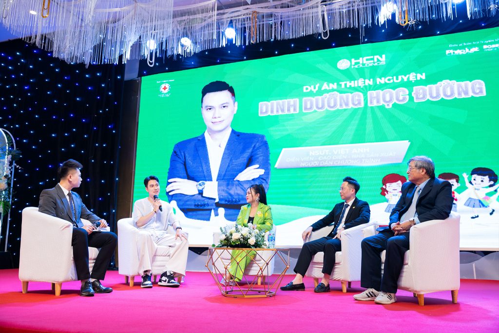 NSƯT Việt Anh cũng chia sẻ trong buổi tọa đàm: “Với cương vị là bậc phụ huynh, tôi cũng luôn trăn trở khi xây dựng chế độ ăn uống cho các con. Dự án “Dinh dưỡng học đường” có rất nhiều lợi ích không chỉ tốt cho trẻ nhỏ mà còn giúp các phụ huynh giải tỏa nỗi lo này. Tôi hi vọng dự án sẽ lan tỏa yêu thương đến những trẻ em có hoàn cảnh khó khăn, đồng thời có thêm các buổi tọa đàm, chia sẻ của các chuyên gia để phụ huynh hiểu và tìm ra giải pháp tốt nhất để cải thiện chiều cao, trí não cho các con”.