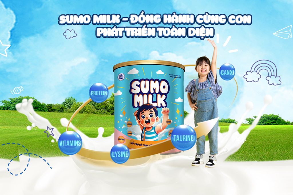 Sữa Sumo Milk là sản phẩm sữa công thức cao cấp do Công ty Cổ phần HCN HOLDINGS phân phối vinh dự đồng hành cùng dự án “Dinh dưỡng học đường” 2024. Sumo Milk được sản xuất phù hợp với thể trạng trẻ em Việt Nam với thành phần chính gồm: Nhóm dinh dưỡng đa lượng (Protein, carbohydrate, chất béo), Beta Glucan kết hợp với L – Lysine HCL, Taurine được xem là những dưỡng chất vàng để cung cấp năng lượng, phát triển cơ bắp, trí não, cải thiện thị lực, tốt cho hệ tiêu hóa và cơ xương.