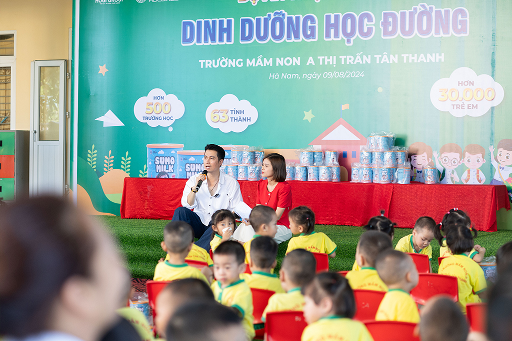 NSƯT Việt Anh, trong vai trò nghệ sĩ đồng hành cùng dự án, đã quay trở lại Hà Nam và ghé thăm Trường Mầm non Tân Thanh A và Trường Tiểu học B – Thị trấn Tân Thanh. Anh chia sẻ: “Tôi đã tham gia nhiều chương trình thiện nguyện, nhưng đây là lần đầu tiên tôi đồng hành cùng một dự án hướng tới trẻ em có hoàn cảnh khó khăn. Khi đến Hà Nam, tôi nhận thấy các em nhỏ tại đây đang gặp phải tình trạng suy dinh dưỡng thấp còi, ảnh hưởng nhiều đến sức khỏe và kết quả học tập. Con trai tôi trước đây cũng gặp tình trạng tương tự, nhưng từ khi sử dụng Sumo Milk, cháu đã có sự phát triển rất đáng kể. Tôi hy vọng những hộp sữa này sẽ giúp đỡ các em nhỏ, và lan tỏa dự án ý nghĩa này đến nhiều nơi hơn.”